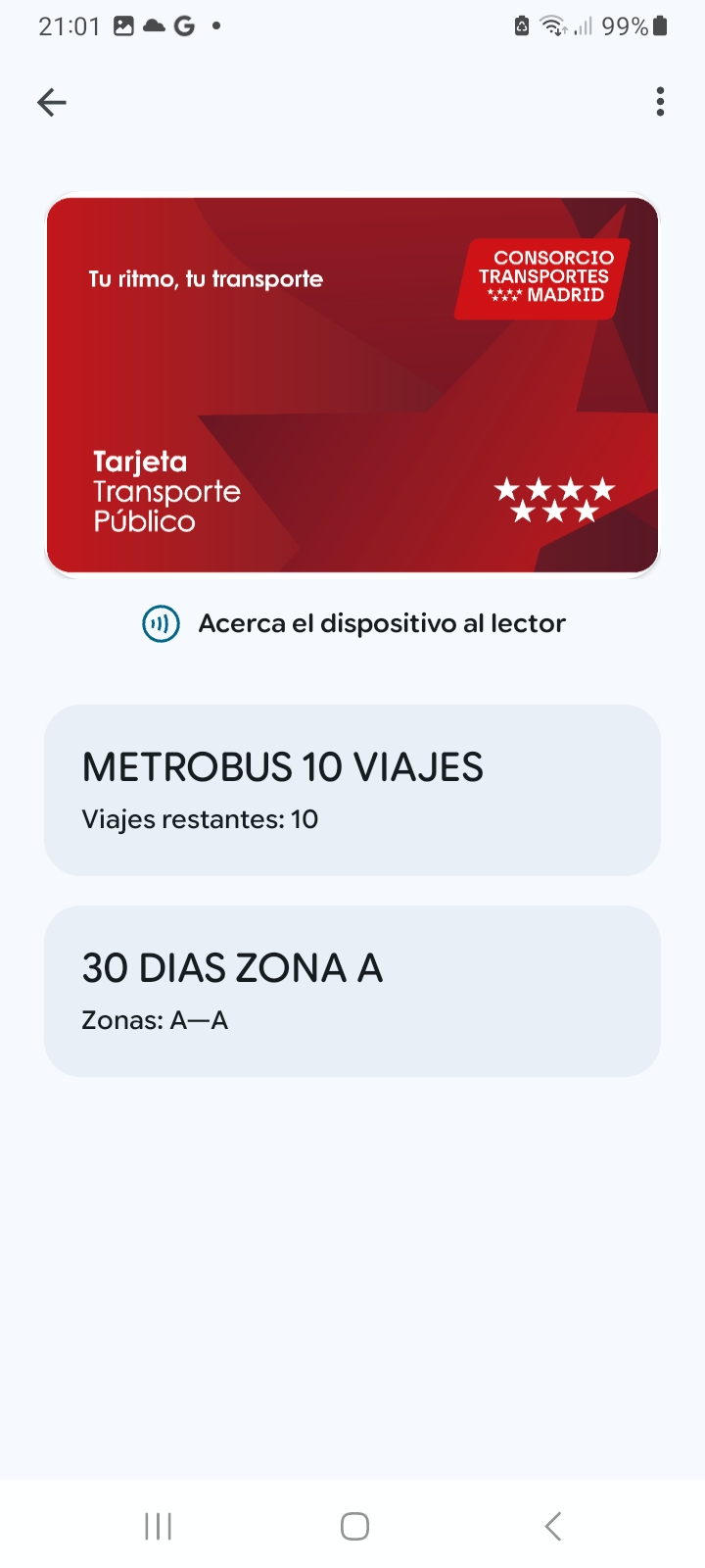 Finalizada la operación podrás ver tu tarjeta y billete cargado en Google Wallet. ¡Ya puedes empezar a validar con tu móvil!