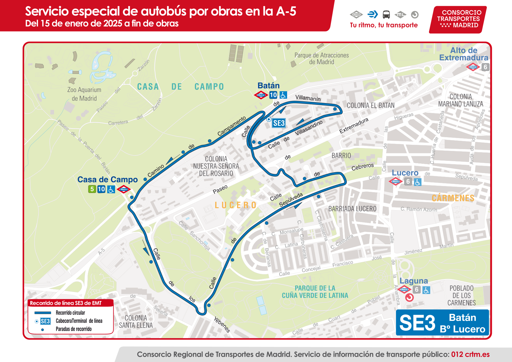 Su itinerario permite conectar con la línea 3 de Metro y el servicio especial SE6.