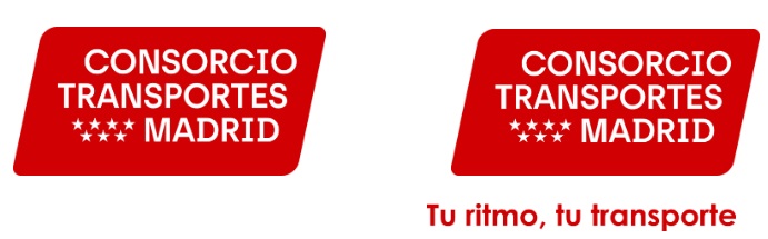 Las versiones más comunes en el uso de la identidad corporativa del Consorcio de Transportes de Madrid son, o bien, el logo aislado, o el logo junto a su lema.