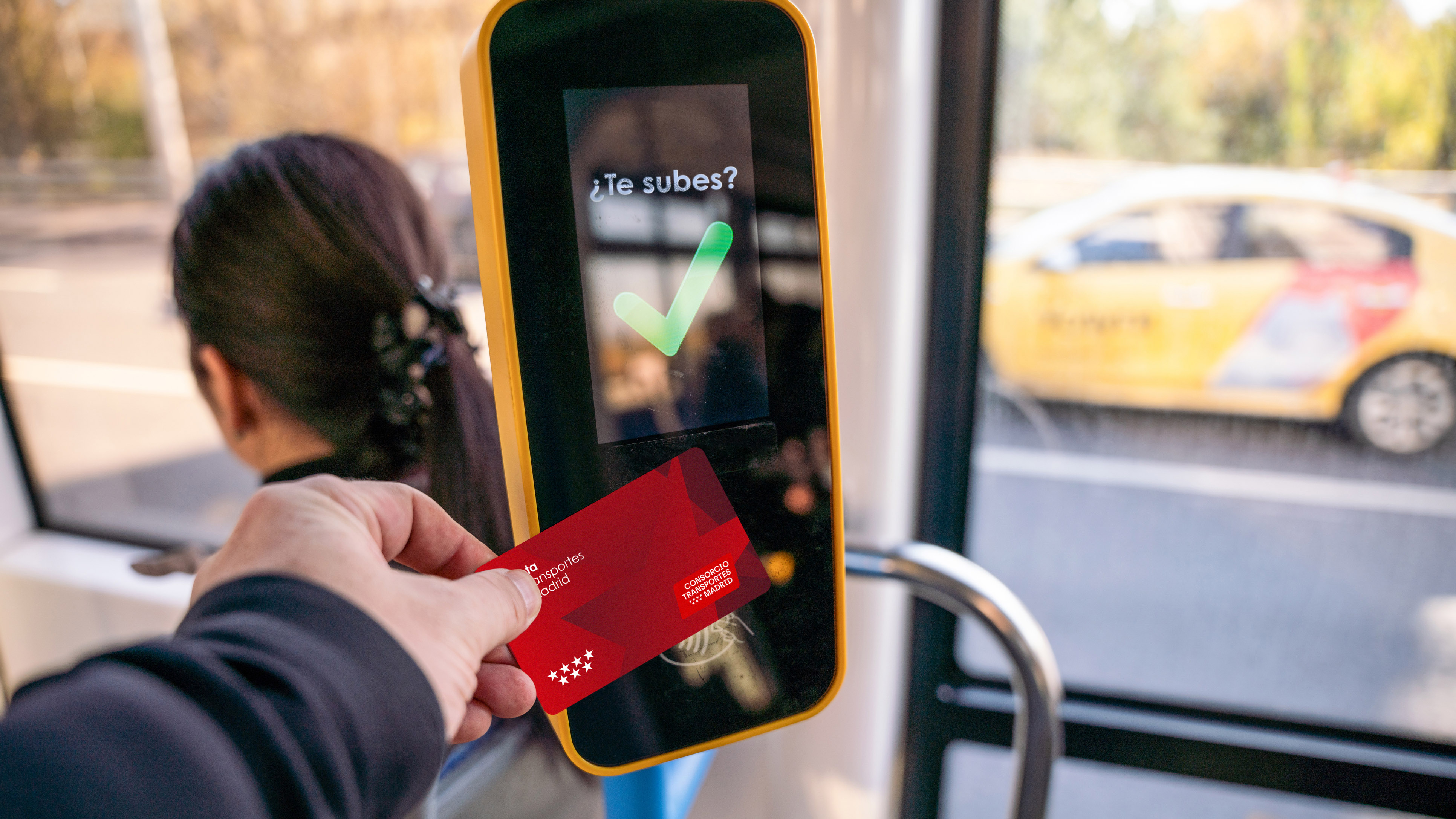 La tarjeta debe aproximarse al lector, que descontará un viaje en cada validación y a través de su pantalla informará del saldo de viajes restante.
